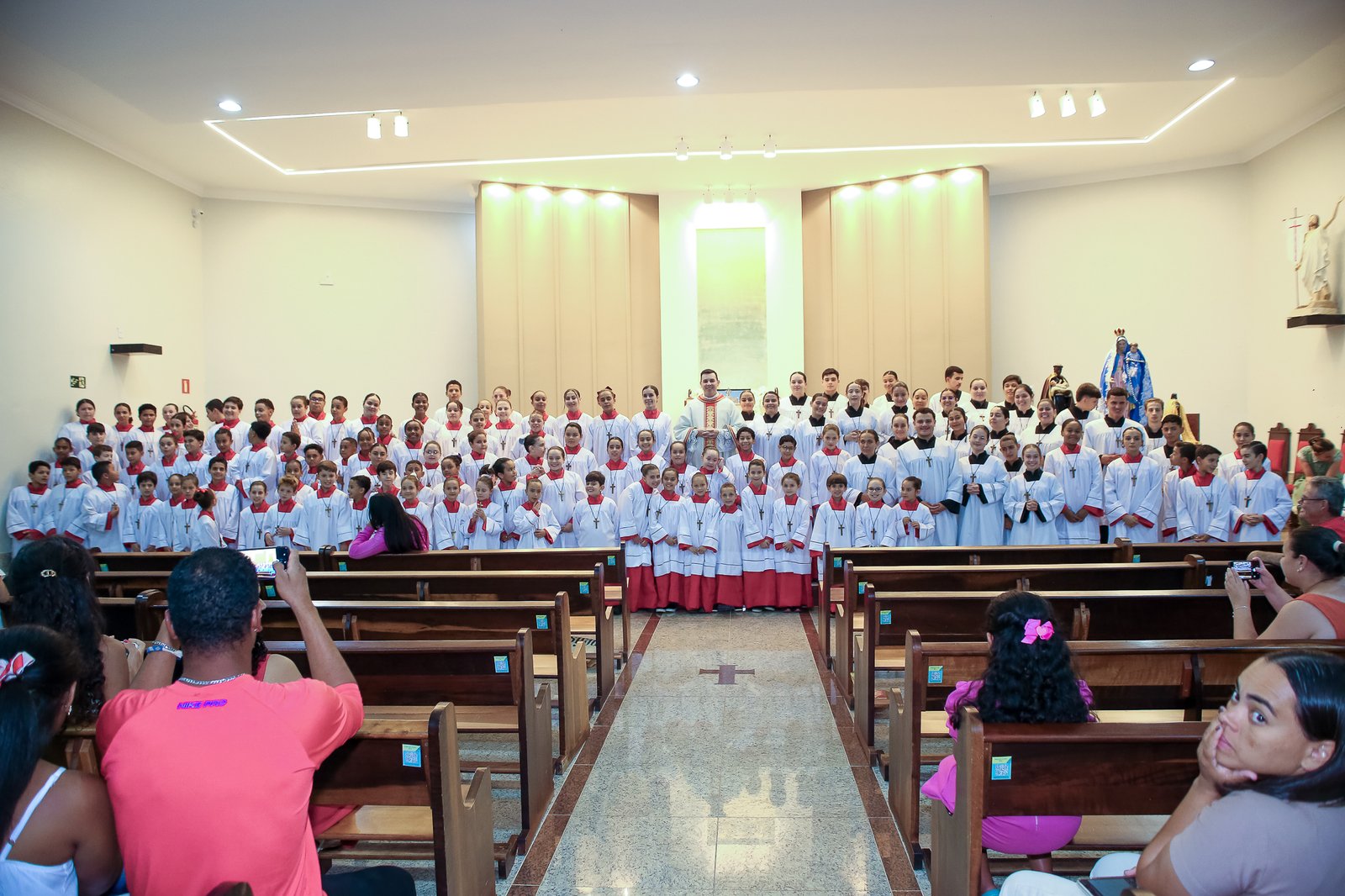 Serão investidos cerca de 105 coroinhas, meninos e meninas com idades entre 6 e 13 anos, e 27 acólitos, jovens a partir dos 13 anos. Este evento demonstra a vitalidade e o engajamento da juventude da paróquia na missão de servir a Deus e à Igreja.