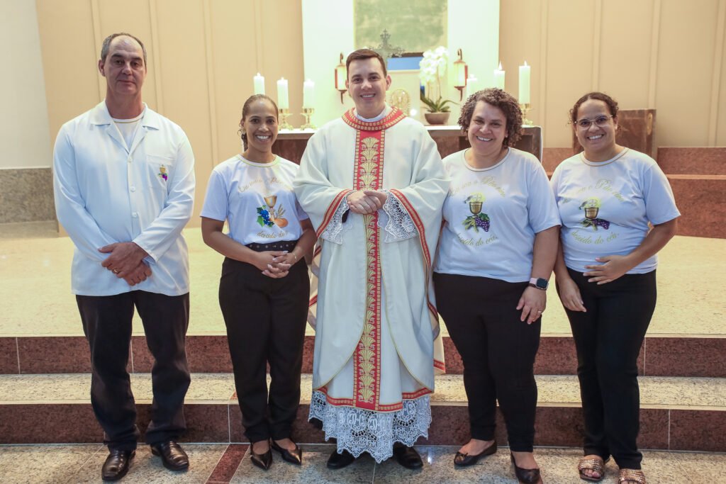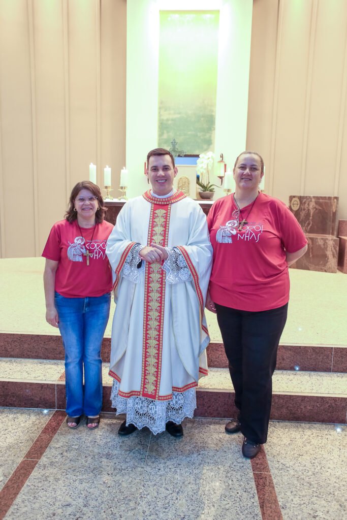 • Coroinhas: Popularmente chamados de “meninos e meninas do coro” (ou do altar), são crianças e pré-adolescentes que auxiliam em diversas funções, como apresentar o livro de orações (missal), levar as ofertas (pão, vinho e água) no Ofertório, e participar das procissões. Sua presença é um convite vibrante para que os mais jovens se aproximem da Eucaristia. O padroeiro dos coroinhas é São Tarcísio, um jovem mártir da Eucaristia.